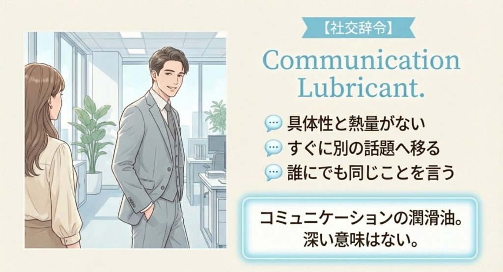 社交辞令の場合、その褒め言葉には「具体性」と「熱量」が欠けているのが特徴です。