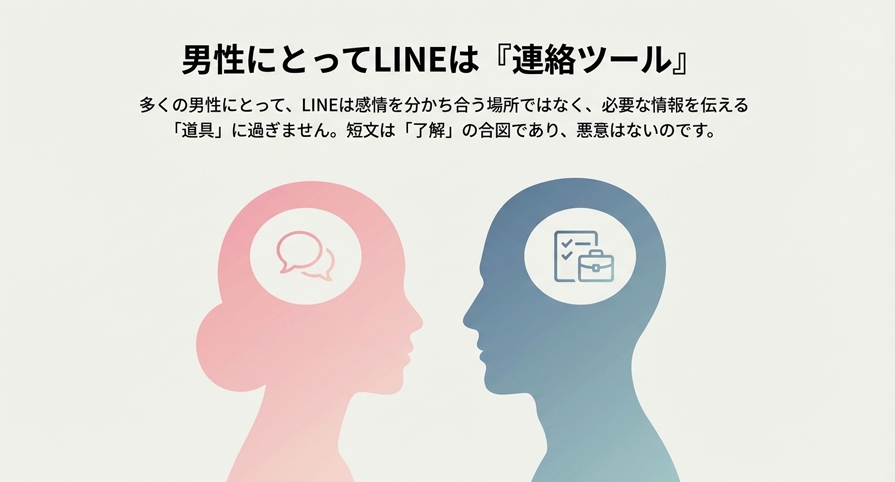多くの男性にとって、LINEは「感情を分かち合う場所」ではなく、「必要な情報を伝えるための道具」に過ぎません。