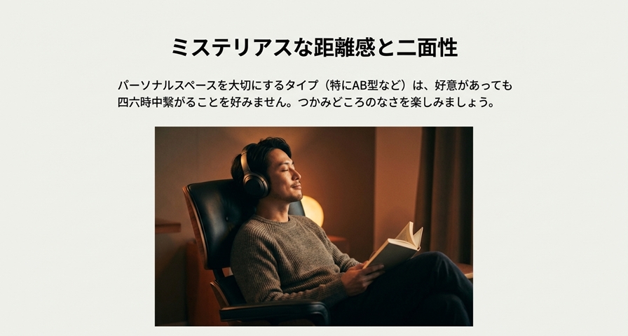 自分のパーソナルスペースをとても大切にするため、たとえ好意があっても四六時中繋がっていることを好まない人が多いんです。