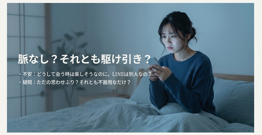 LINEはそっけないのに会うと優しい男という不思議な存在に、脈ありなのか脈なしなのか、あるいは単なる思わせぶりなのかと悩む夜もありますよね。